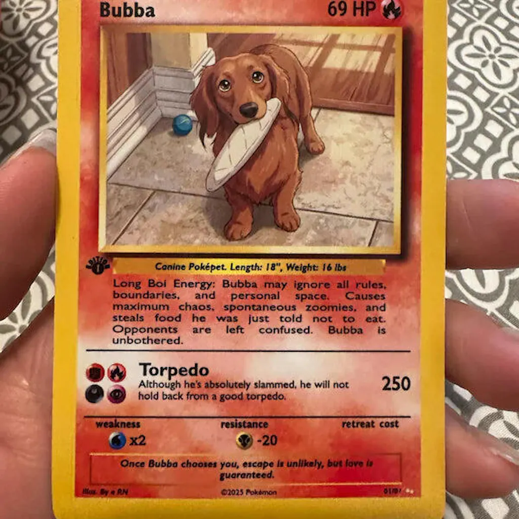 Celebrate your furry friend in a fun and unforgettable way with this custom Poke-style game card! 🐾✨